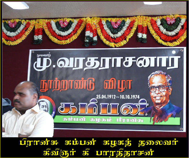 வழக்கம்போல் சுவையான உணவு வழங்கிய திருமதி குணசுந்தரி பாரதிதாசன் அவர்களுக்கும் தமிழுக்கென விழாக்களைச் சலியாது எடுக்கும் கம்பன் கழகத்தின் தலைவர் கவிஞர் கி. பாரதிதாசன் அவர்களுக்கும் பாராட்டுகள்.