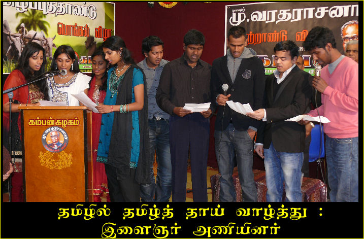 முனைவர் மு.வ – அக்கால இளைஞர் அனைவர் நெஞ்சிலும் இடம் பெற்ற மூத்த தமிழ் அறிஞர்.அவர்தம் நூற்றாண்டு விழாவைப் பல இடங்களில் கொண்டாடி வருகிறார்கள், தாய்த் தமிழகத்தில். ஐரோப்பாவில் அதனை முதலில் கொண்டாடிய பெருமை பிரான்சு கம்பன் கழகத்தையே சாரும். தமிழறிஞர்கள், தமிழுக்கு உழைத்தவர்கள், விடுதலை வீரர்கள் எனப் பலருக்கும் நூற்றாண்டு விழா எடுக்கும் நல்ல வழக்கம் இக் கம்பன் கழகத்துக்கு உண்டு. அந்த வரிசையில், 19.02.2012 ஞாயிறு அன்று பிரான்சு கம்பன் கழகம், முனைவர் மு;வ அவர்களுக்கு விழா எடுத்தது. அத்துடன் தைப் பொங்கல், தமிழர் புத்தாண்டு விழாக்களும் சேர்ந்து கொண்டன. முப்பெரும் விழா சிறப்புடன் நடைபெற்றது. விழா தொடங்கவதற்கு முன் மாணவ மாணவியர்க்கு ஓவியப் போட்டியும் மாதர்களுக்குக் கோலப் போட்டியும் நடைபெற்றன.