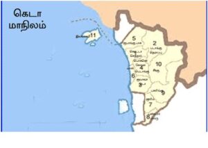 11 மாவட்டங்கள். தலைநகர் அலோ செத்தார். மாநிலப் பரப்பளவு 9,500 சகிமீ. மக்கள் தொகை இருபது இலட்சம். பதினைந்து இலட்சம் மண்ணின் மைந்தர், மூன்று இலட்சம் சீனர், இரண்டு லட்சம் தமிழர்.
