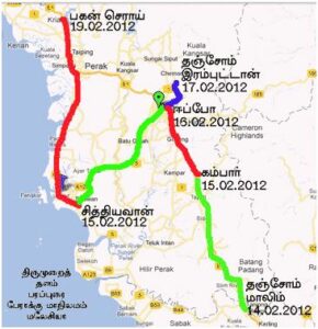 தேவாரம் தெரியாத தமிழர் இல்லை. கோயில் இல்லாத தமிழர் குடியிருப்பு இல்லை. ஈப்போ கல்லுமலை அருள்மிகு முருகன் கோயிலில் தைப்பூசம் மிகச் சிறப்பான திருவிழா மலேசிய இந்துச் சங்கத் தலைவர் திரு. மோகன் சண் அவர்கள் ஆலோசனைக்கமைய ஆறு நாள்கள் (14.2.2012 தொடக்கம் 19.12.2012 வரை) பேராக்கு மாநிலத்தில் பன்னிரு திருமுறைப் பரப்புரைப் பயணம்.