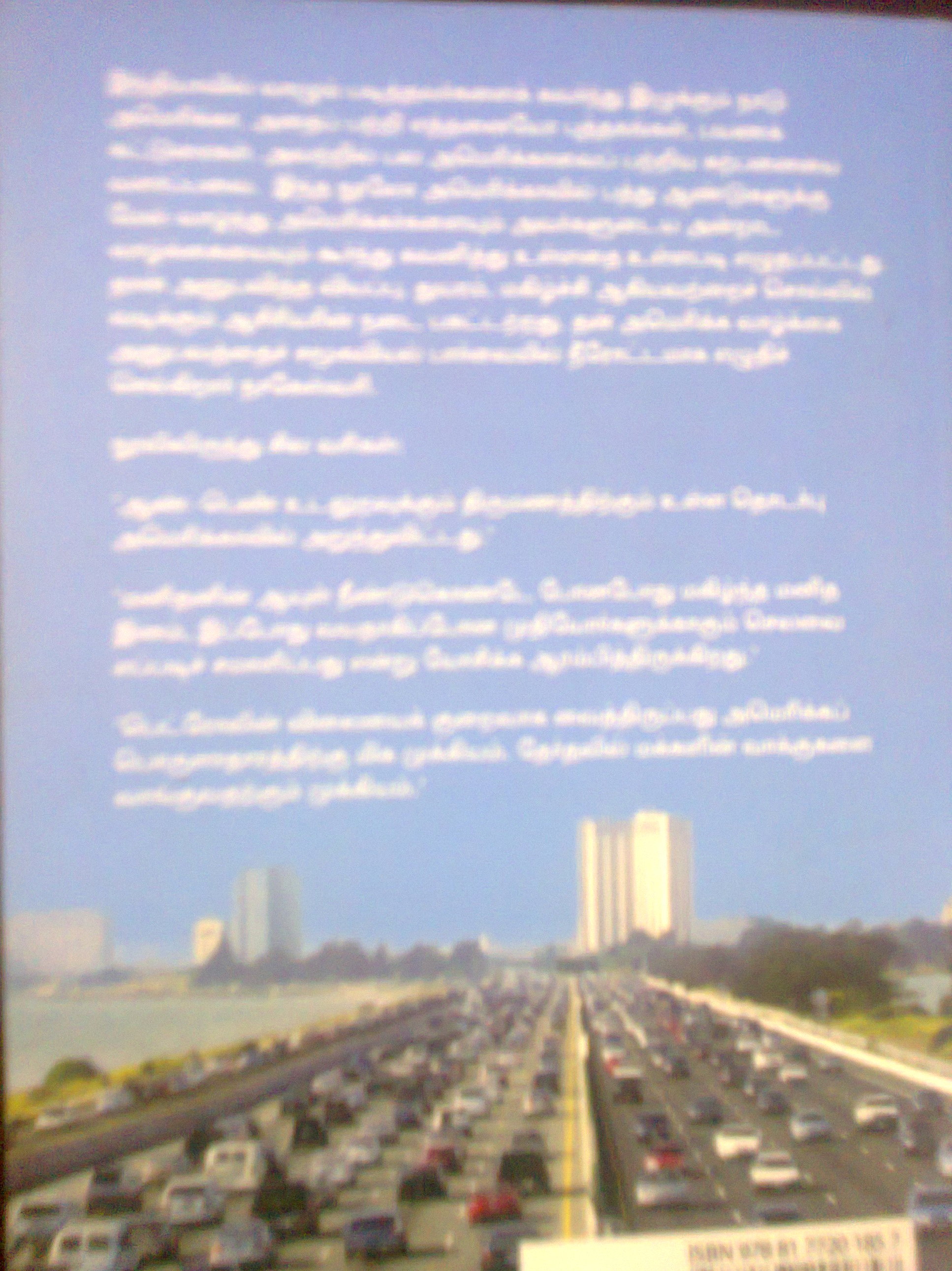 ‘வரிவிதிப்பு முறையும் சமூக அமைப்பும்’ என்ற தலைப்பில் அ முதல் ஃ வரையிலான அனைத்துத் தகவல்களையும் வழங்கியுள்ளதும் சிறப்பு. அதே போல நீதியின் இரு பக்கங்கள் குறித்த கட்டுரையில் பல சம்பவங்களுடன் விளக்கியுள்ள பாங்கும் இனிமை. கடன் அட்டைகளின் பிடியில் சிக்கித் திணறும் அமெரிக்கர்களை விடுவிக்கப் போவது யார் என்ற இவருடைய கவலையும் நியாயமானதாகவே உள்ளது. கடன் அட்டைக்கான தவணைகளை சரியான நேரத்தில் கட்டத் தவறினால் வட்டி கூடிப்போய் எத்துனை சிரமப்பட வேண்டியிருக்கும் என்பதைக்கூட தன்னுடைய கவனக் குறைவினால் ஏற்பட்ட சம்பவத்தின் ஒப்பீடு மூலம் அழகாக விளக்கியுள்ளார்.