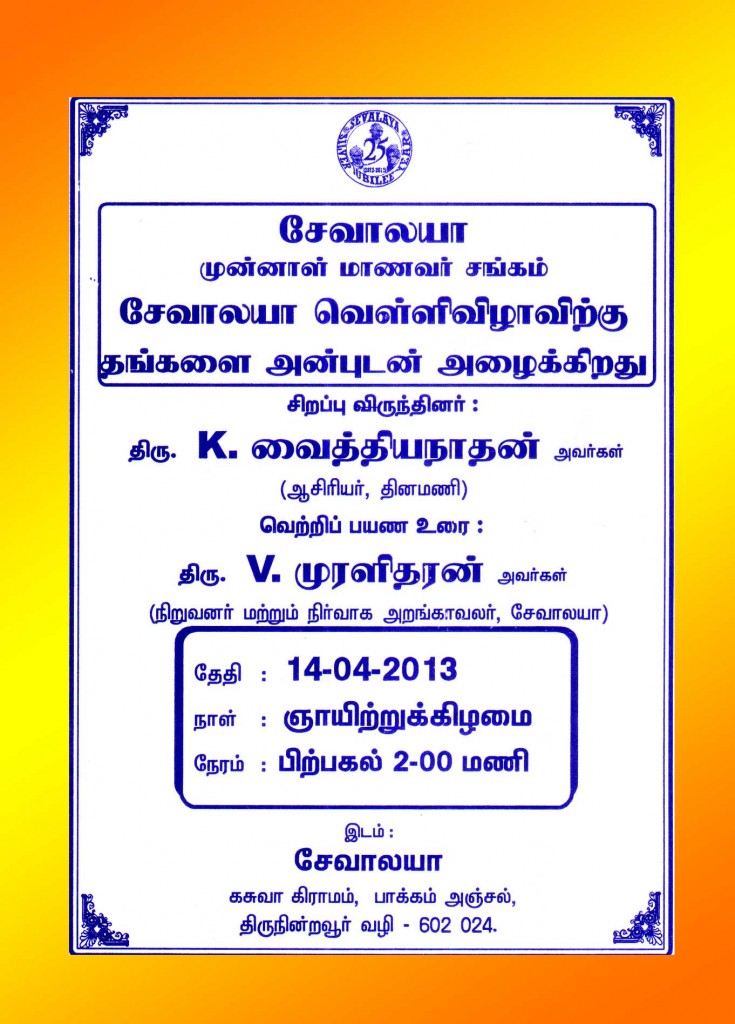 செய்திகள் Functions at Sevalaya செய்தியாளர்-2 April 8, 2013 0 பதிவாசிரியரைப் பற்றி செய்தியாளர்-2 வல்லமை செய்தியாளர்-2 See author's posts Post navigation Previous: அமெரிக்க அனுபவங்கள் – ஒரு சமூகவியல் பார்வை – புத்தக மதிப்புரைNext: திருமுருகன் துதிமாலை (5) More Stories கட்டுரைகள் செய்திகள் இங்கிலாந்திலிருந்து ஒரு மடல் … 313 சக்தி சக்திதாசன் February 18, 2026 0 கட்டுரைகள் செய்திகள் இங்கிலாந்திலிருந்து ஒரு மடல் – 309 சக்தி சக்திதாசன் October 1, 2025 0 கட்டுரைகள் செய்திகள் இங்கிலாந்திலிருந்து ஒரு மடல் – 308 சக்தி சக்திதாசன் September 1, 2025 0 Leave a ReplyYour email address will not be published. Required fields are marked *Comment * Name * Email * Website Save my name, email, and website in this browser for the next time I comment. The reCAPTCHA verification period has expired. Please reload the page. Δ