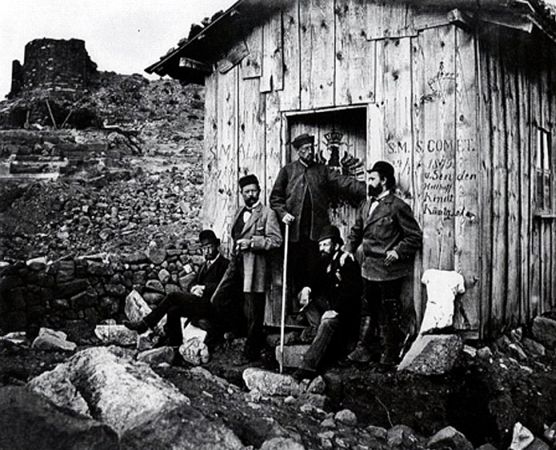 ஜெர்மனியிலும் அன்றைய துருக்கியிலும் முறையான அனுமதி பெற்று இந்நகரின் அகழ்வாராய்ச்சிப் பணியில் இறங்கினார். 1878ம் ஆண்டில் அகழ்வாராய்ச்சிப் பணிகள் தொடங்கின. அவரது முயற்சி வீண் போகவில்லை. அவருக்குக் கிடைத்ததோ விலைமதிக்க முடியாத ஒரு பரிசு. பண்டைய கிரேக்க தெய்வம் ஸியூஸ் (Zeuz) க்காக எழுப்பப்பட்ட கோயில் முழுமையாக இவ்வாய்வில் அகழ்ந்தெடுக்கப்பட்டது!