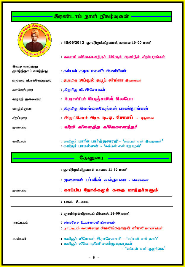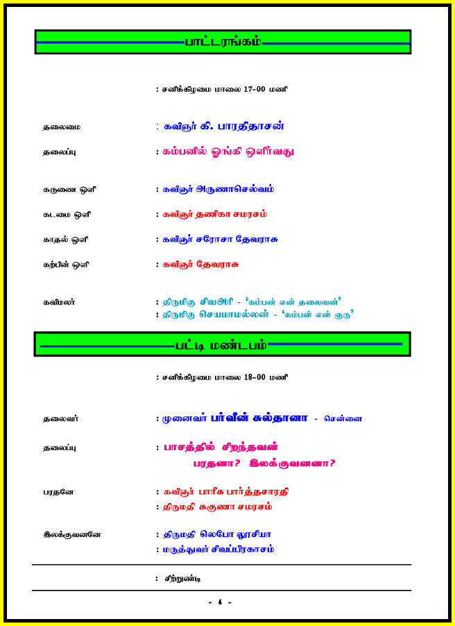கம்பன் விழாவின் ஒளி ஒலி காட்சிகளை காண வழிவகை செய்து உலகெங்கும் வாழும் தமிழர் பெருமக்கள் கண்டு உவகை எய்த வழிவகை செய்ய வேண்டிக் கொள்கிறேன்.
