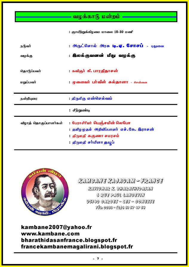 – பிரான்சு கம்பன் கழகத்தின் செயலர்
