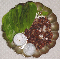ஆலவேலி சேமங்கலம் ரமணி அய்யர் மாயவரம் துபாஷ் அக்ரஹாரத்தில் இருந்த போது, அவரிடம் இருந்த ஒரு எவர் சில்வர் வெற்றிலைச் செல்வம் இன்னும் என் நினைவில் இருக்கிறது. அது ஒரு வாத்து வடிவத்தில் இருக்கும். அதன் வயிற்றுப்பகுதியில் ஒரு பக்க அறையைத் திருப்பினால் அதில் வெற்றிலை…. இன்னுமொரு சிறகைத் திருப்பினால் பாக்கு, பாக்குவெட்டி… கழுத்துப்பகுதியைத் திருப்பினால் சுண்ணாம்பு …அதற்கும் கீழ் புகையிலை. ஊஞ்சலில் உட்கார்ந்தோ, வாசலில் மர சாய்வு நாற்காலியில் உட்கார்ந்தோ வாயில் வெற்றிலை போடும் ரமணி அய்யரின் கழுத்தில் தொங்கும் தங்க காப்பு போட்ட ருத்ராட்ஷத்தையும், தோளில் இருந்த சிவப்புக் காசித்துண்டையும் என்னால் மறக்க முடியாது.