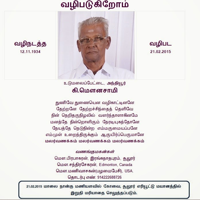 பழமைபேசியின் தந்தை இயற்கை எய்தினார்!!