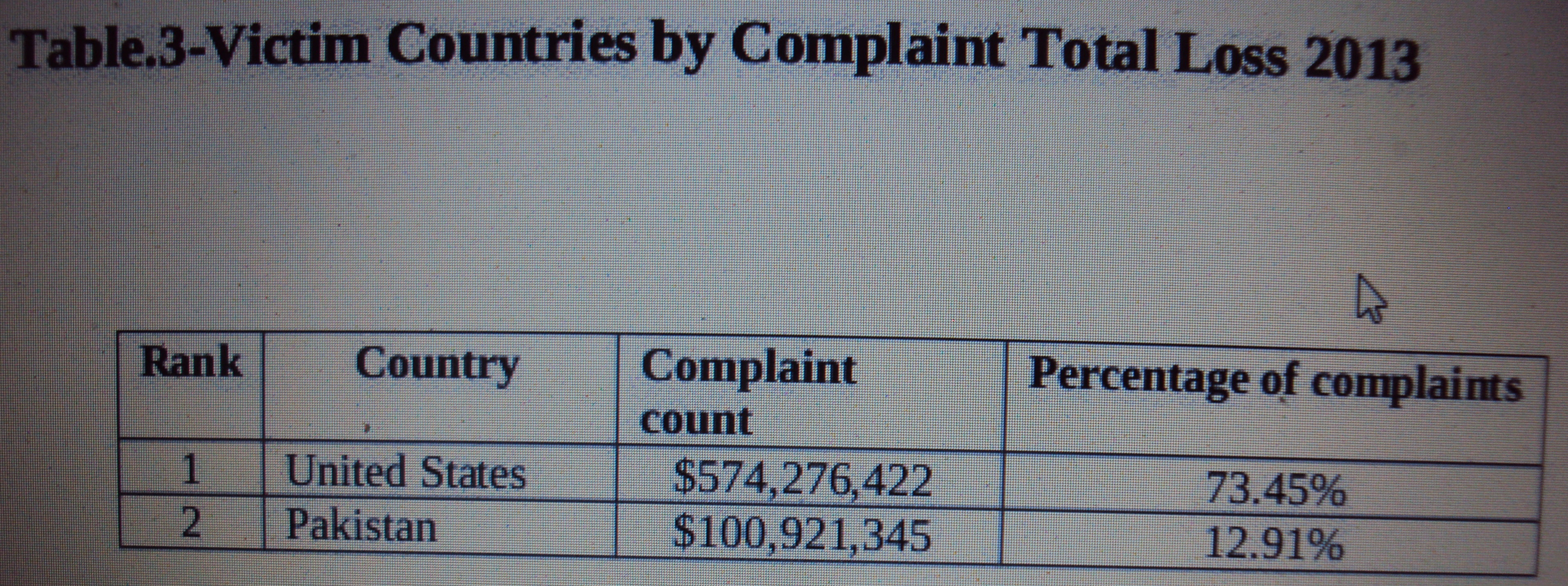 Table.3-Victim Countries by Complaint Total Loss 2013