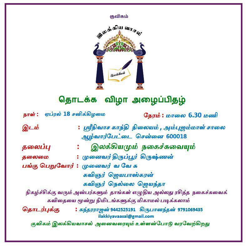 1 thought on “இலக்கிய வாசல் – தொடக்க விழா அழைப்பிதழ்”
