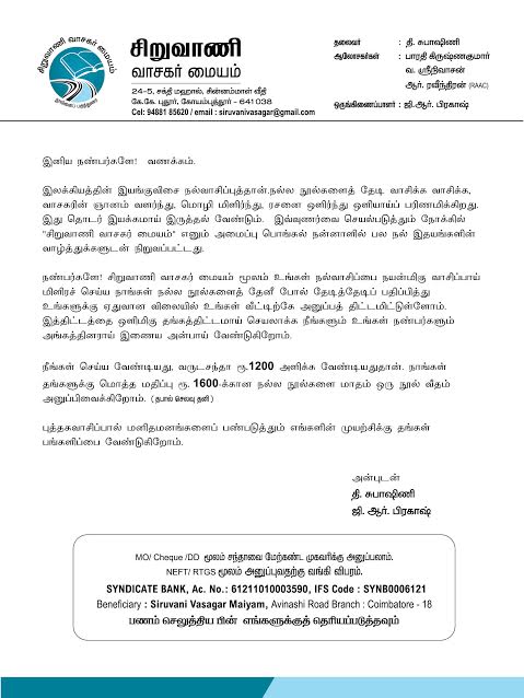 புத்தக வாசிப்பால் மனிதமனங்களைப் பண்படுத்தும் எங்களின் முயற்சிக்கு தங்கள் பங்களிப்பை வேண்டுகிறோம்.