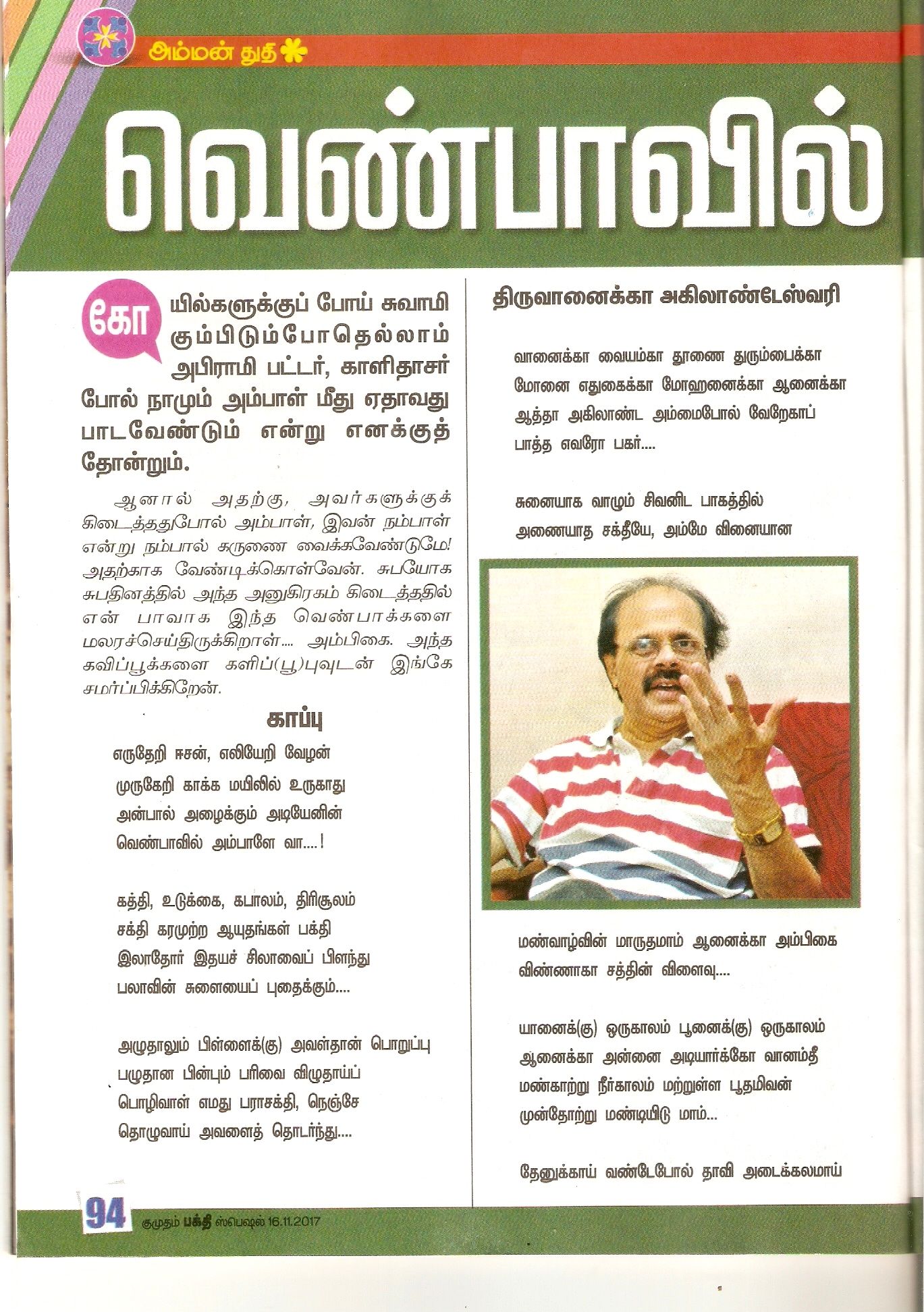 கிரேசி மொழிகள் திருமால் திருப்புகழ் ”குமுதம் பக்தி -வெண்பாவில் அம்பாள்’’….! கிரேசி மோகன் November 1, 2017 0 பதிவாசிரியரைப் பற்றி கிரேசி மோகன் எழுத்தாளர், நடிகர், கவிஞர், என சகல கலைகளிலும் பிரபலமானவர். See author's posts Post navigation Previous: கோகுலம் கதிர் -நான் கடவுள் பேசறேன்….!Next: குறுந்தொகை நறுந்தேன் – 9 More Stories கவிதைகள் கிரேசி மொழிகள் திருமால் திருப்புகழ் மரபுக் கவிதைகள் வல்லமையும் கிரேஸியும் விவேக்பாரதி June 12, 2019 0 திருமால் திருப்புகழ் கேசவ் வண்ணம் – கிரேசி எண்ணம் கிரேசி மோகன் December 5, 2018 0 திருமால் திருப்புகழ் கேசவ் வண்ணம் – கிரேசி எண்ணம் கிரேசி மோகன் December 4, 2018 0 Leave a ReplyYour email address will not be published. Required fields are marked *Comment * Name * Email * Website Save my name, email, and website in this browser for the next time I comment. The reCAPTCHA verification period has expired. Please reload the page. Δ