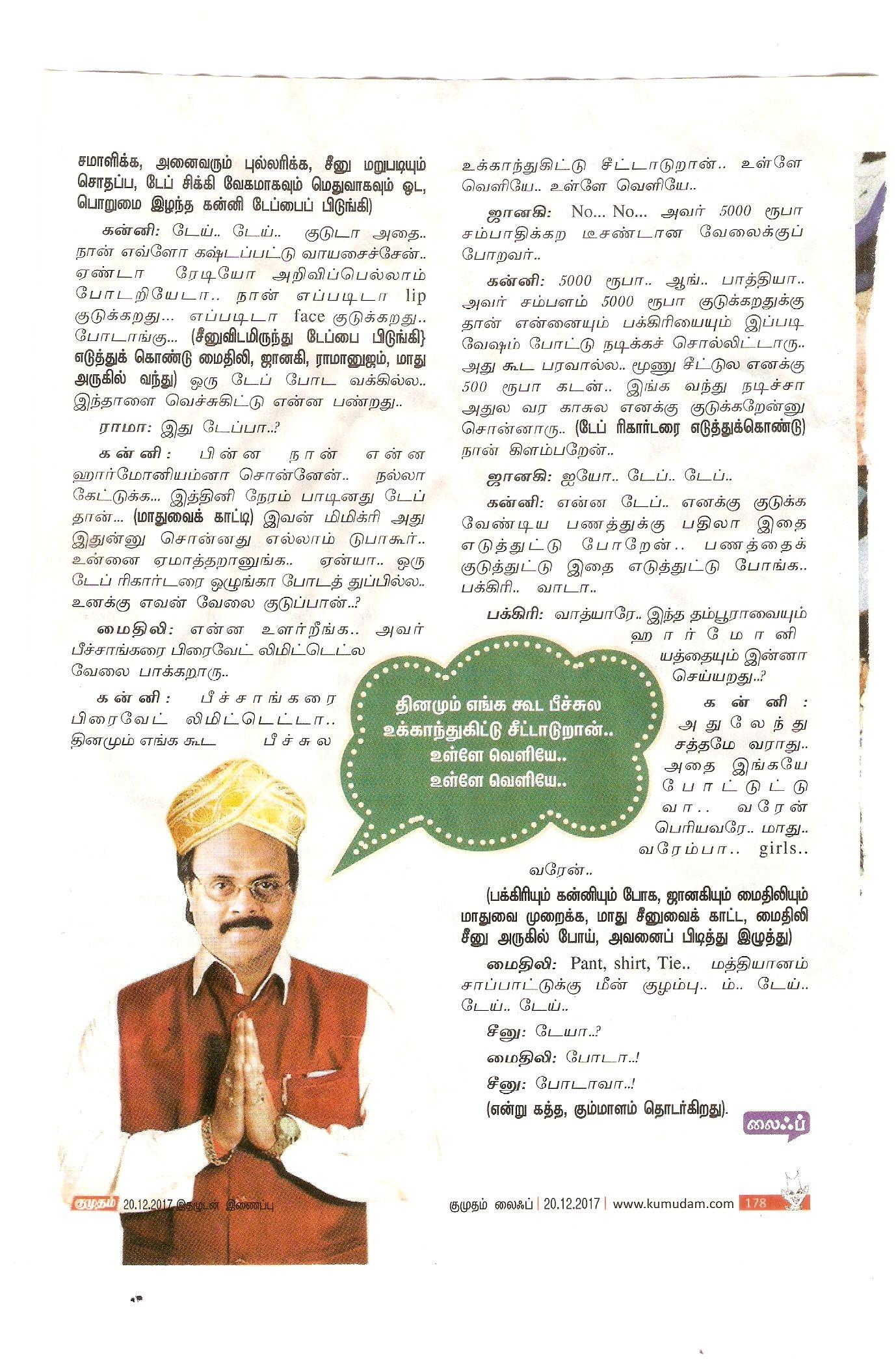 கிரேசி மொழிகள் திருமால் திருப்புகழ் ”பீச் மாப்பிளை’’ -சுபம், முடிவு, மங்களம்….! கிரேசி மோகன் December 16, 2017 0 பதிவாசிரியரைப் பற்றி கிரேசி மோகன் எழுத்தாளர், நடிகர், கவிஞர், என சகல கலைகளிலும் பிரபலமானவர். See author's posts Post navigation Previous: கேசவ் வண்ணம் – கிரேசி எண்ணம்Next: மார்கழி மணாளன் ( மூன்றாம் பகுதி) -1 More Stories கவிதைகள் கிரேசி மொழிகள் திருமால் திருப்புகழ் மரபுக் கவிதைகள் வல்லமையும் கிரேஸியும் விவேக்பாரதி June 12, 2019 0 திருமால் திருப்புகழ் கேசவ் வண்ணம் – கிரேசி எண்ணம் கிரேசி மோகன் December 5, 2018 0 திருமால் திருப்புகழ் கேசவ் வண்ணம் – கிரேசி எண்ணம் கிரேசி மோகன் December 4, 2018 0 Leave a ReplyYour email address will not be published. Required fields are marked *Comment * Name * Email * Website Save my name, email, and website in this browser for the next time I comment. The reCAPTCHA verification period has expired. Please reload the page. Δ