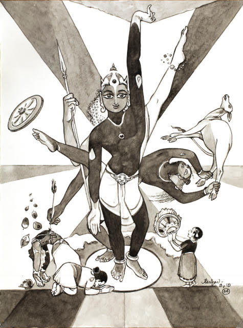 Andal extols Krishna. watercolour. Stratmore paper. 35.5×27 cms