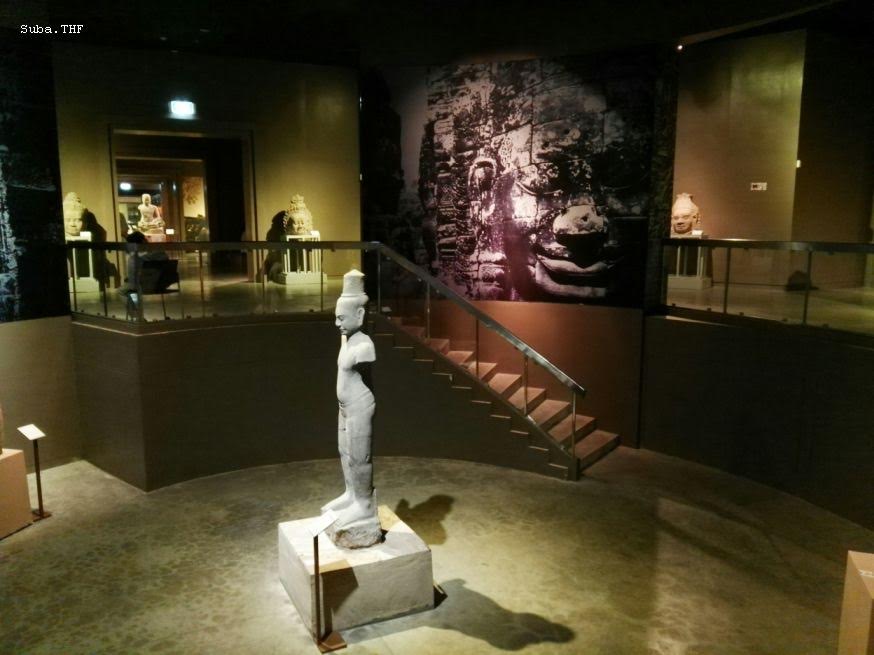 அங்கோர் வாட் கண்காட்சிக் கூடம் அங்கோர் வாட் கோயிலின் வரலாற்றை விளக்கும் பகுதியாக அமைந்துள்ளது. கோயிலின் ஆரம்பகால வரலாறு, பேரரசுகள், மன்னர்கள் பற்றிய தகவல்கள் என்பன போன்ற தகவல்கள் இங்குக் கிடைக்கின்றன. இதனை அடுத்து வரும் அங்கோர் தோம் கண்காட்சிப் பகுதி அங்கோர் தோம் பற்றியும் பாயோன் கோயிலைப் பற்றியும் விளக்கம் தரும் வகையில் அமைக்கப்பட்டுள்ளது. கல்லின் கதை எனும் பகுதியில் பல்லவ கிரந்தத்திலும் சமஸ்கிருதத்திலுமான கல்வெட்டுக்கள் பல இங்குள்ளன. பண்டைய தமிழ் கல்வெட்டு ஒன்றும் இங்குள்ளது. இவை வாசிக்கப்பட வேண்டும்.
