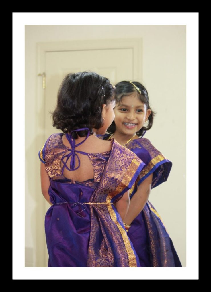 அழகு உடையணிந்து ஆடிமுன் நின்று புன்னகைக்கும் மழலையைத் தன் நிழற்படத்தில் பதிவாக்கியிருப்பவர் திருமதி. பவளசங்கரி அவர்கள். இதனை ஃப்ளிக்கர் குழுமத்திலிருந்து தேர்ந்தெடுத்துப் படக்கவிதைப் போட்டிக்குத் தந்திருப்பவர் திருமதி. இராமலக்ஷ்மி அவர்கள். பெண்மணிகள் இருவரும் என் நன்றிக்கு உரியோர்.